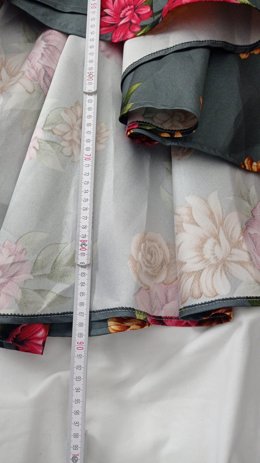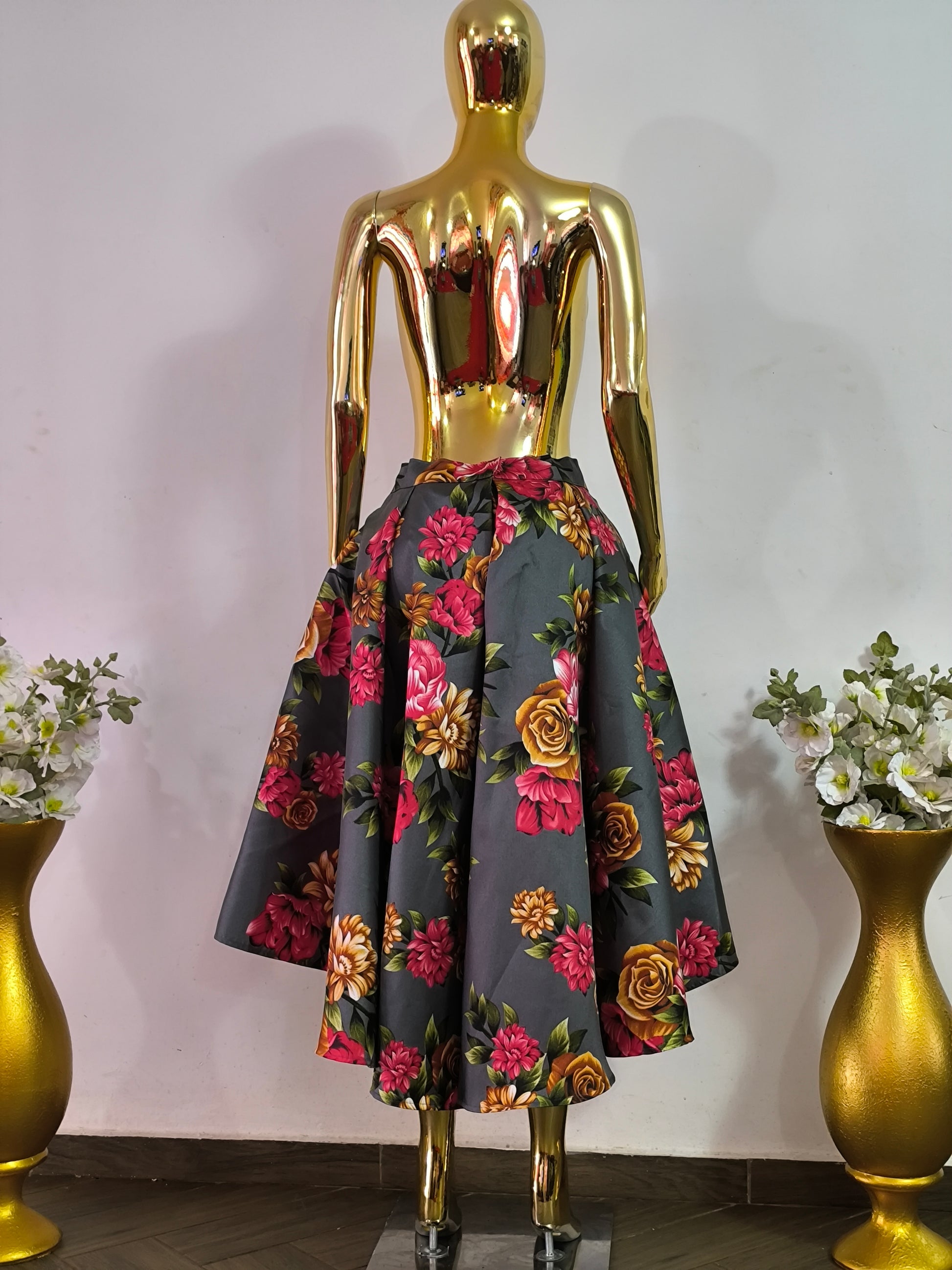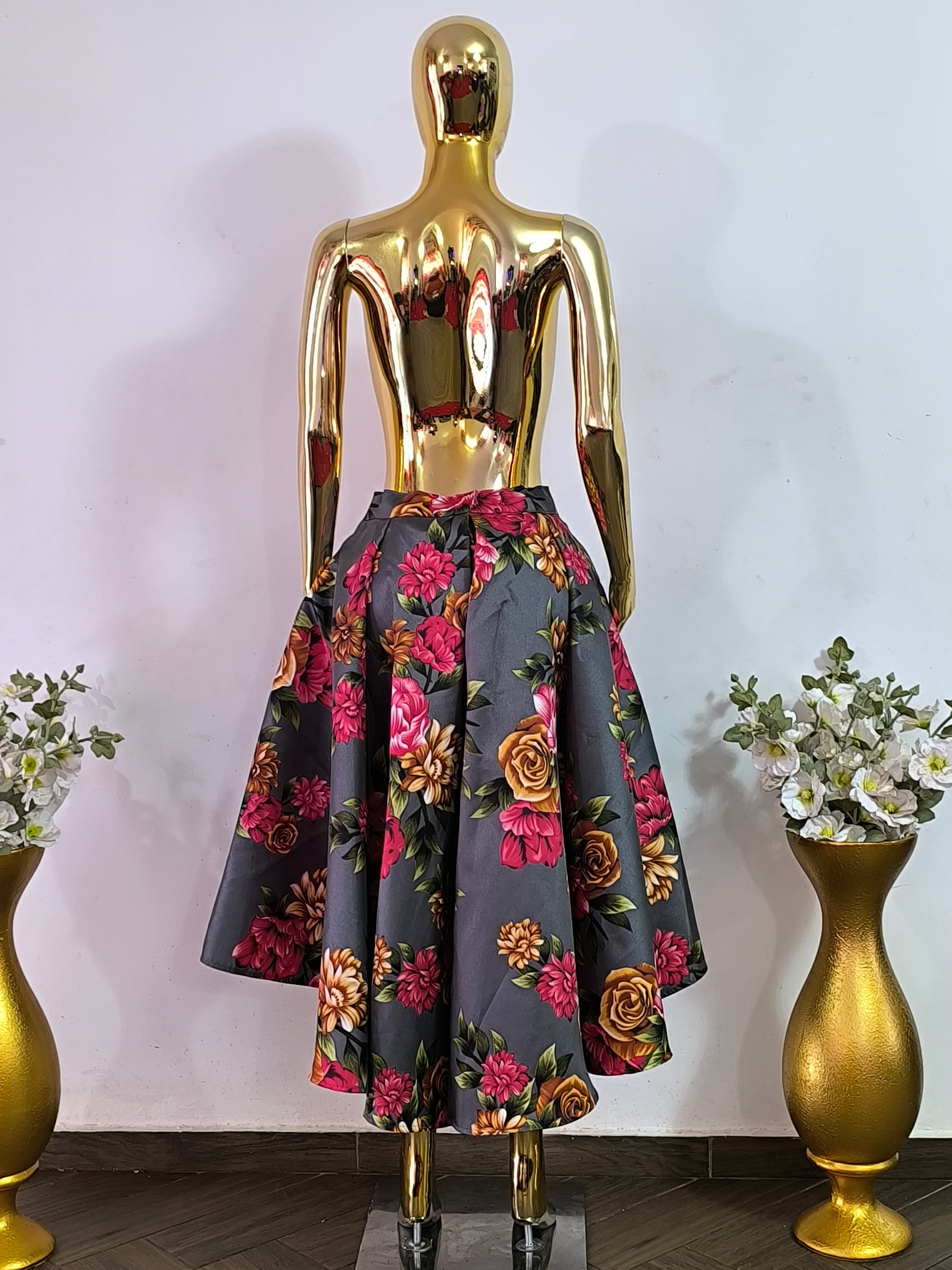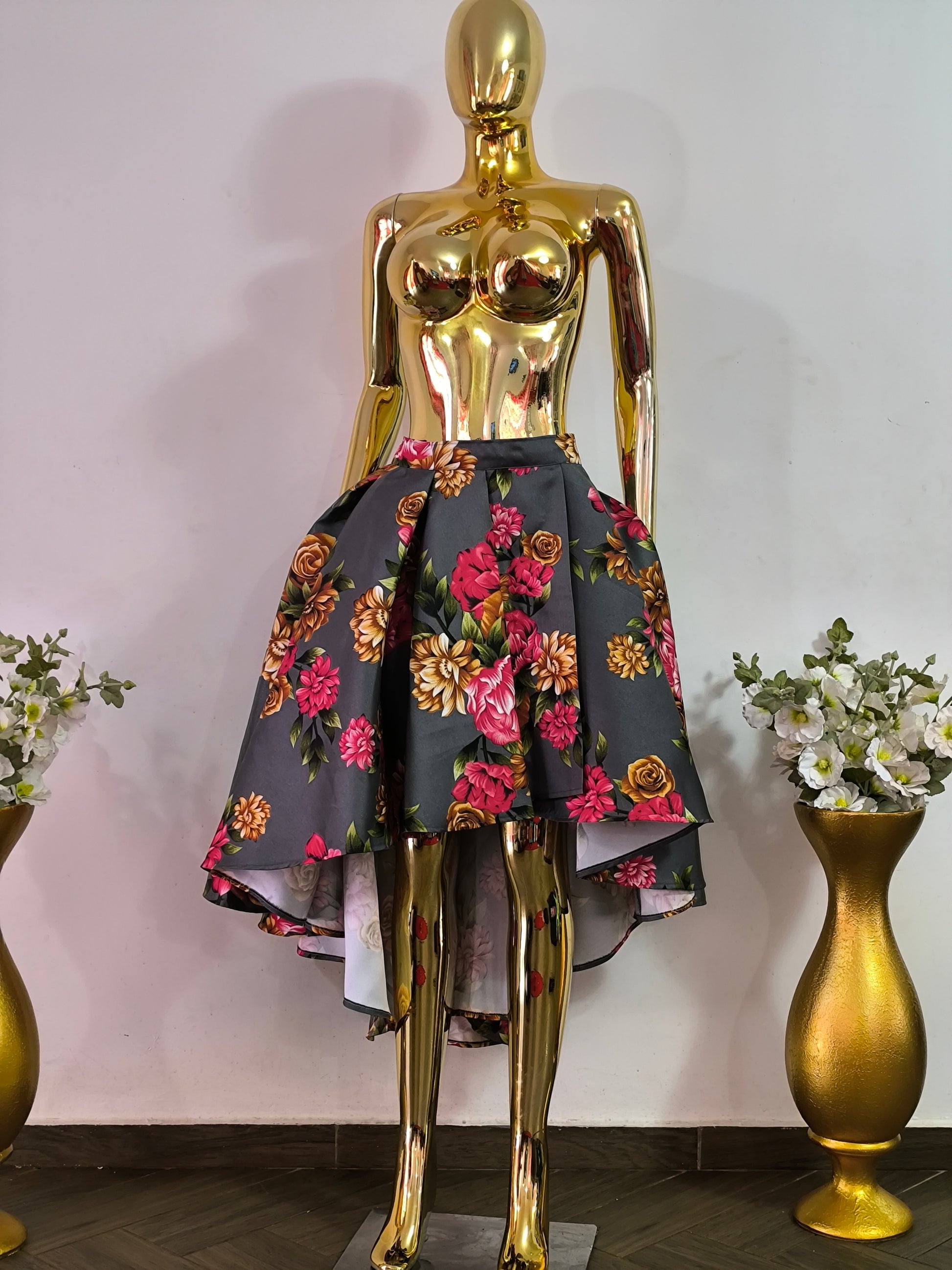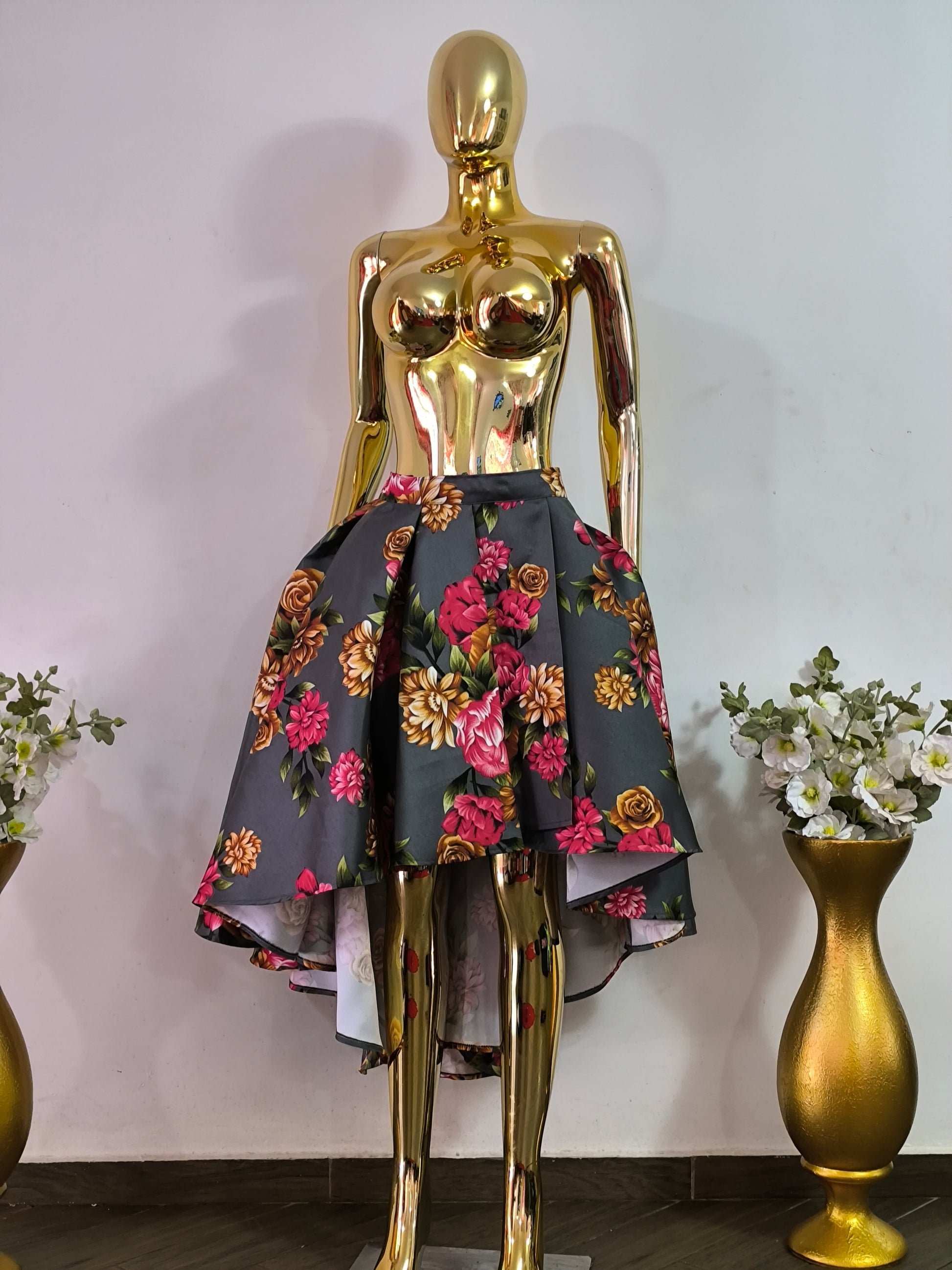 Magnifique jupe grise fleurie asymétrique tailles 42, 44
